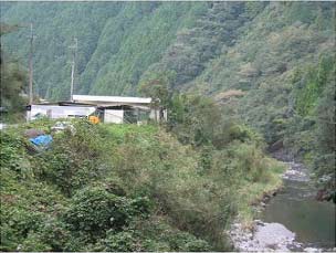 《鶏舎は清流沿いにあり、